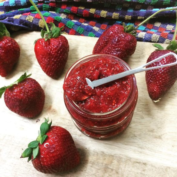 Transfer jam to mason jar or other container. Once jam has cooled to room temperature, cover and store in fridge.
