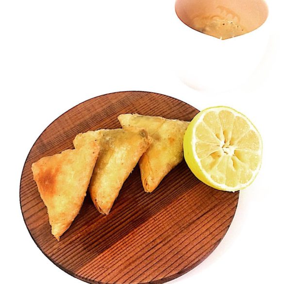 * Place a pot over high heat. Follow the same process until all phyllo sheets and the filling are done. Cooking Method 1: Fry samosas: Heat oil in frying pan or saucepan so that is covers the bottom of the samosas. Cook the samosas in batches until golden on both sides. Transfer immediately to a paper-towel and pat dry. Best served immediately but also good warmed up later! Serve with lemon juice and slices. Cooking Method 2: Bake the samosas: Bake at 180, for 20 minutes or until golden brown.